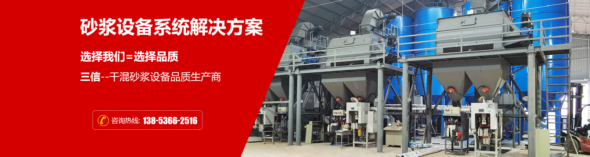 三信機械專注于干粉砂漿生產線、膩子粉生產線、特種砂漿設備以及砂漿施工設備的設計開發(fā)、加工制造